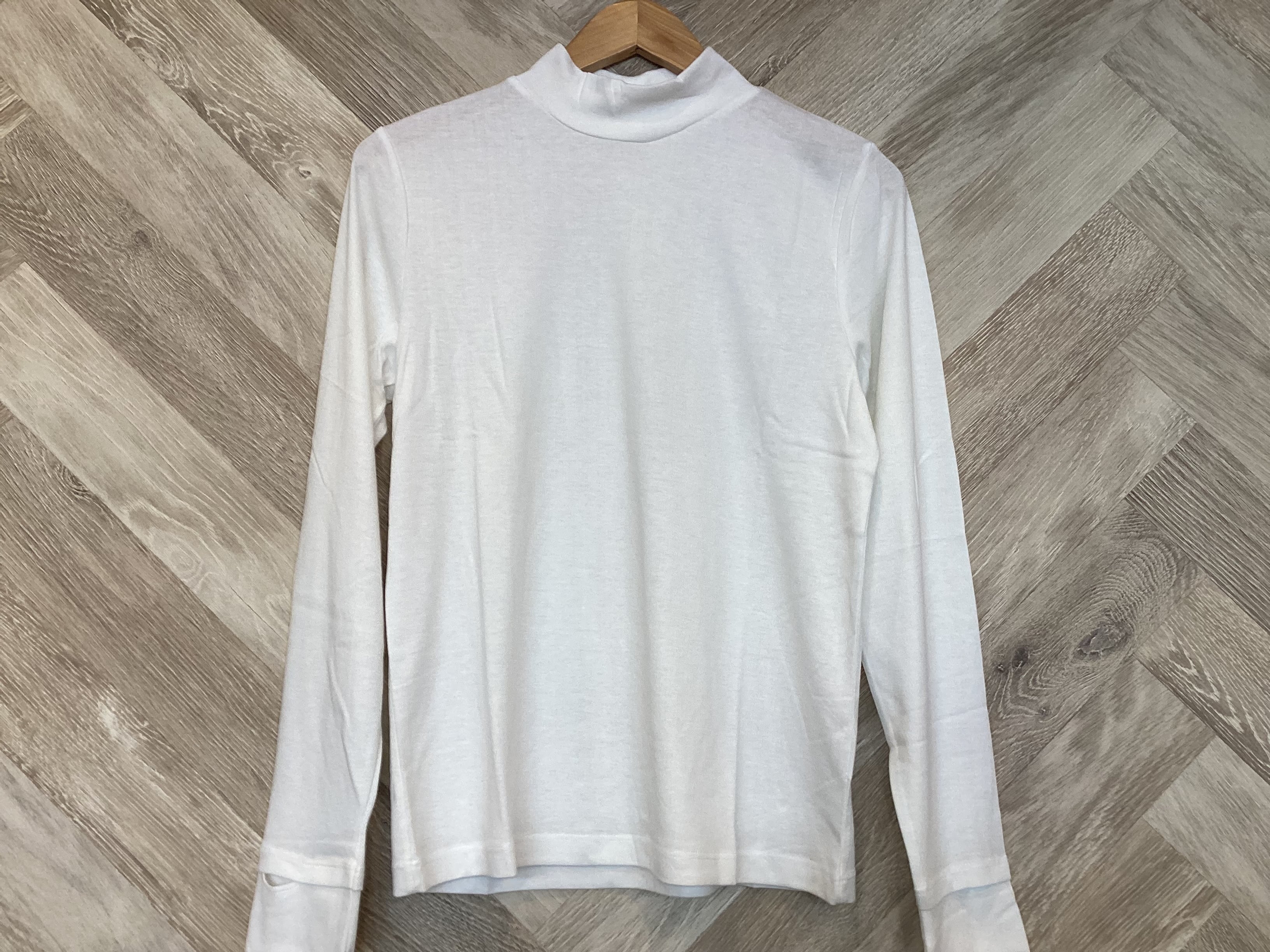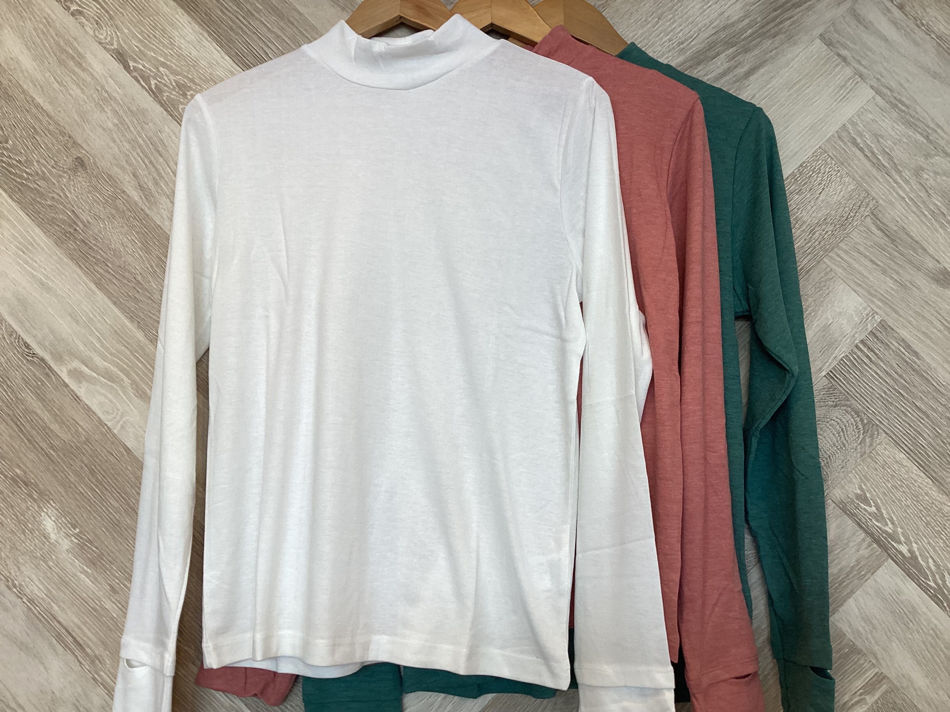 程よいサイズ感とちょうどいいハイネック感で1枚でもレイヤードアイテムとしても使いやすいトップスです