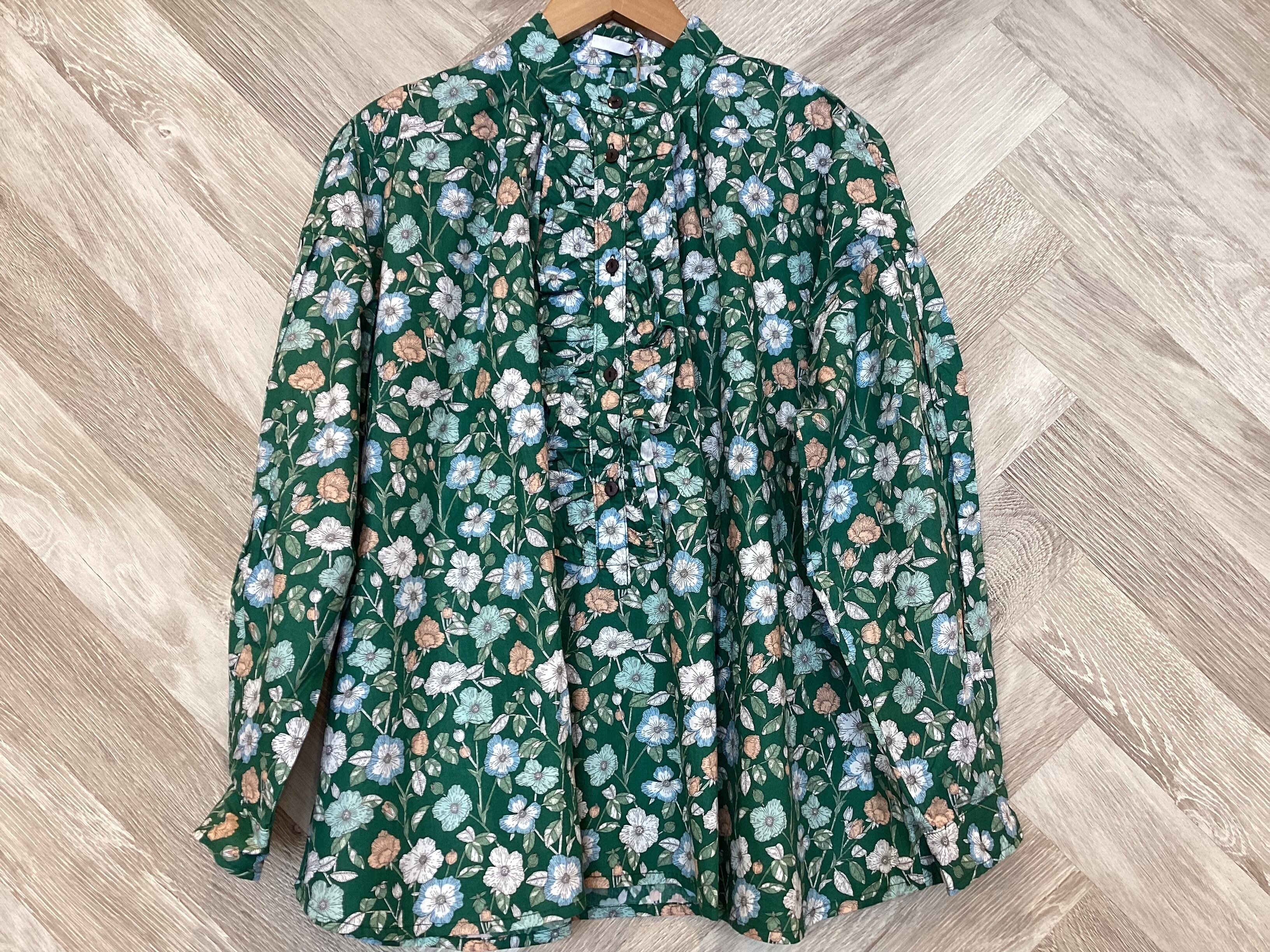 スタンドカラーフリル付きプルオーバーシャツ