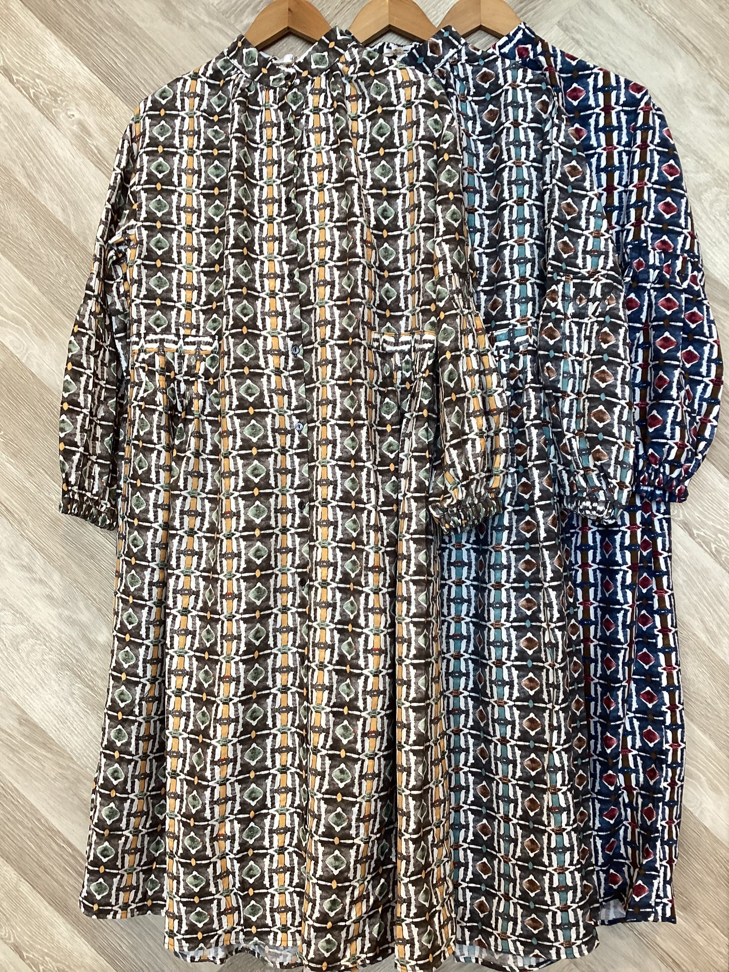 ポップでユニークなアート柄が特徴のレギュラーカラーパイピングシャツワンピース。ゆったりとしたシルエットで着心地抜群です。