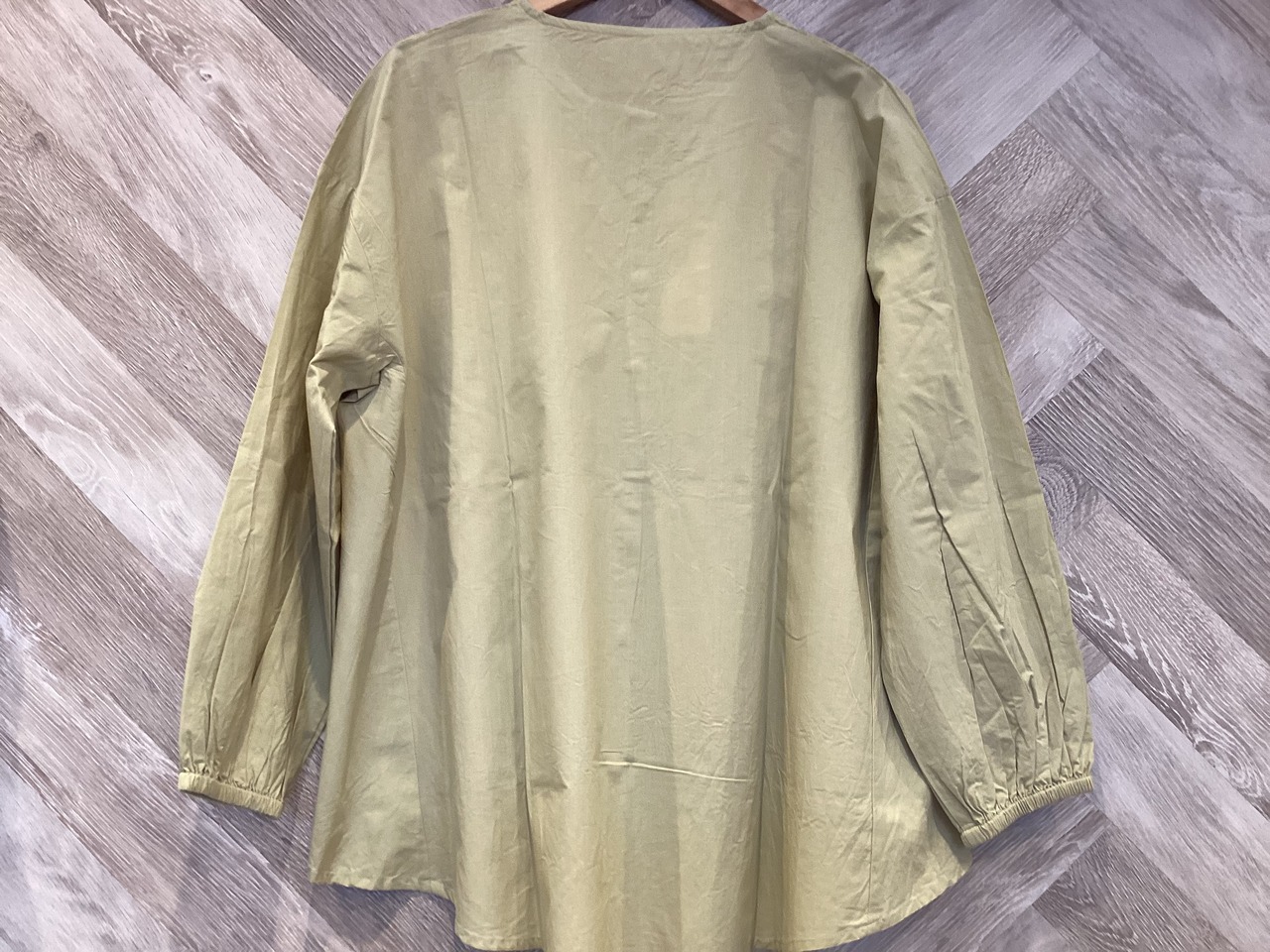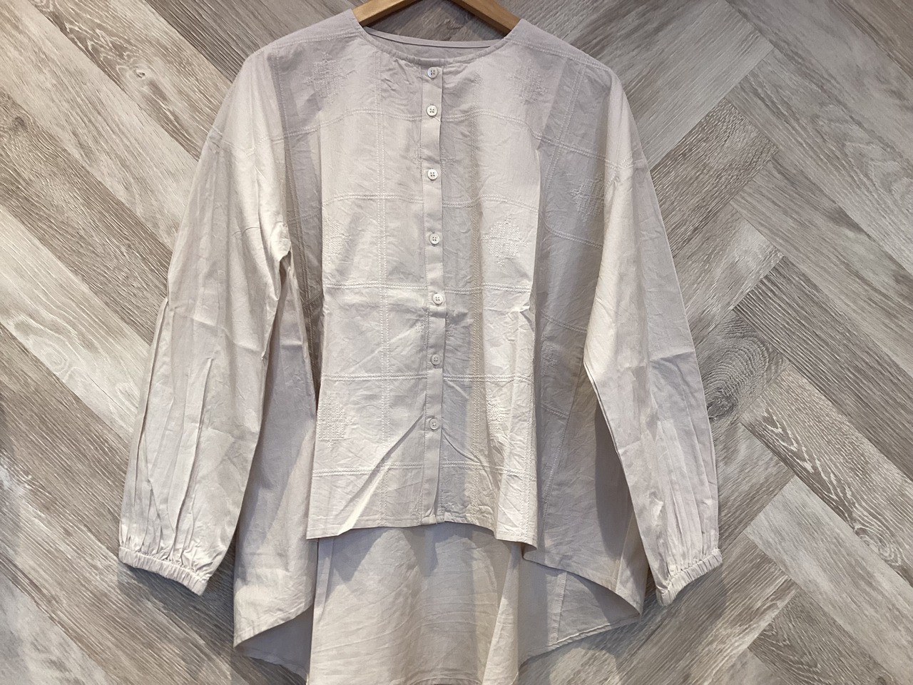 刺繍カラーは同色なので馴染みよくナチュラルな雰囲気にふんわりとした袖と前後差のある裾がこなれた印象をプラスします