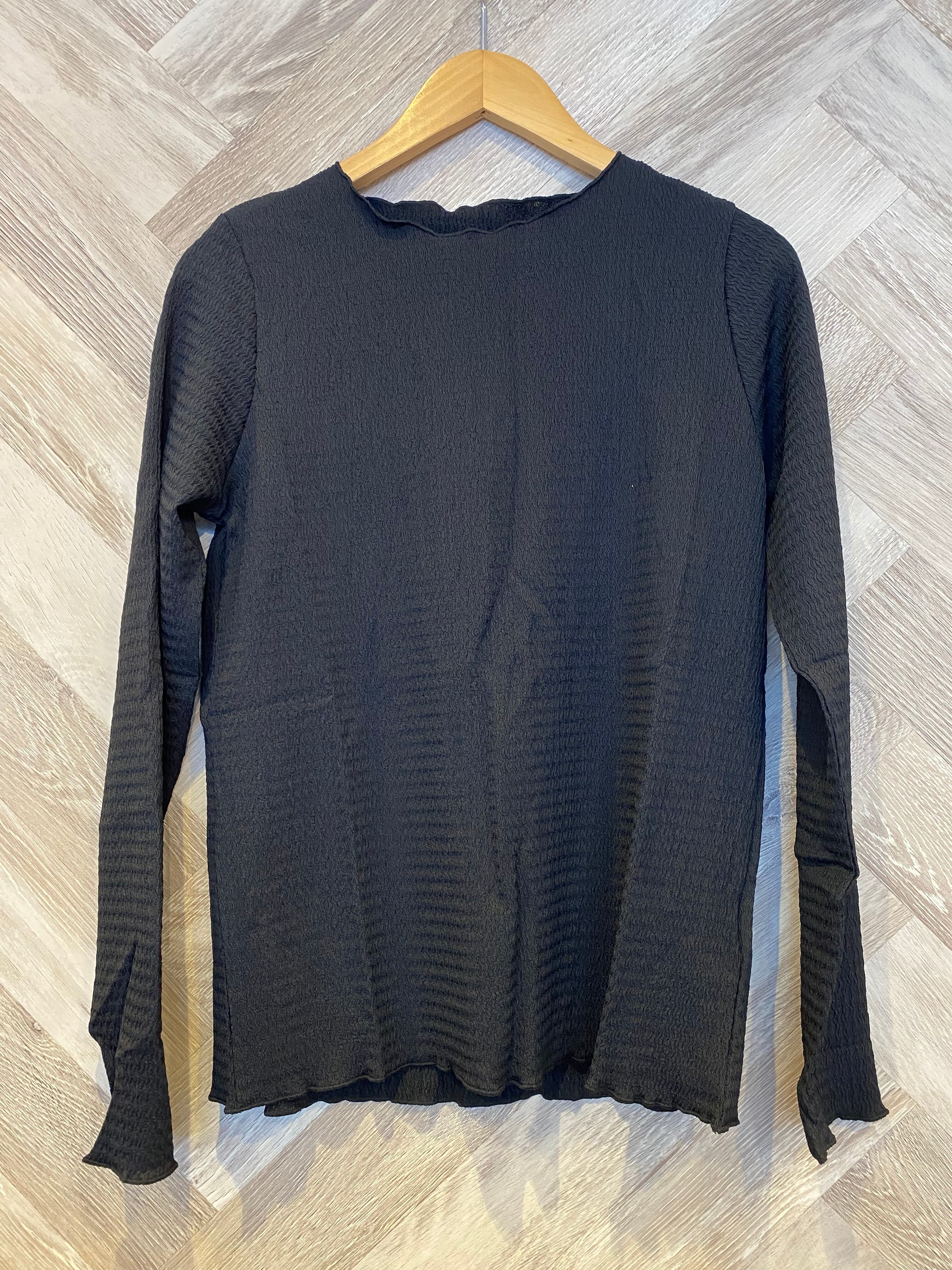 ストレッチ性がありピッタリしすぎない程よいサイズ感1枚でもレイヤードアイテムとしても重宝し軽い色合いでレイヤードした際に裾や袖口からちらりと見せるとトレンド感のあるコーディネートに