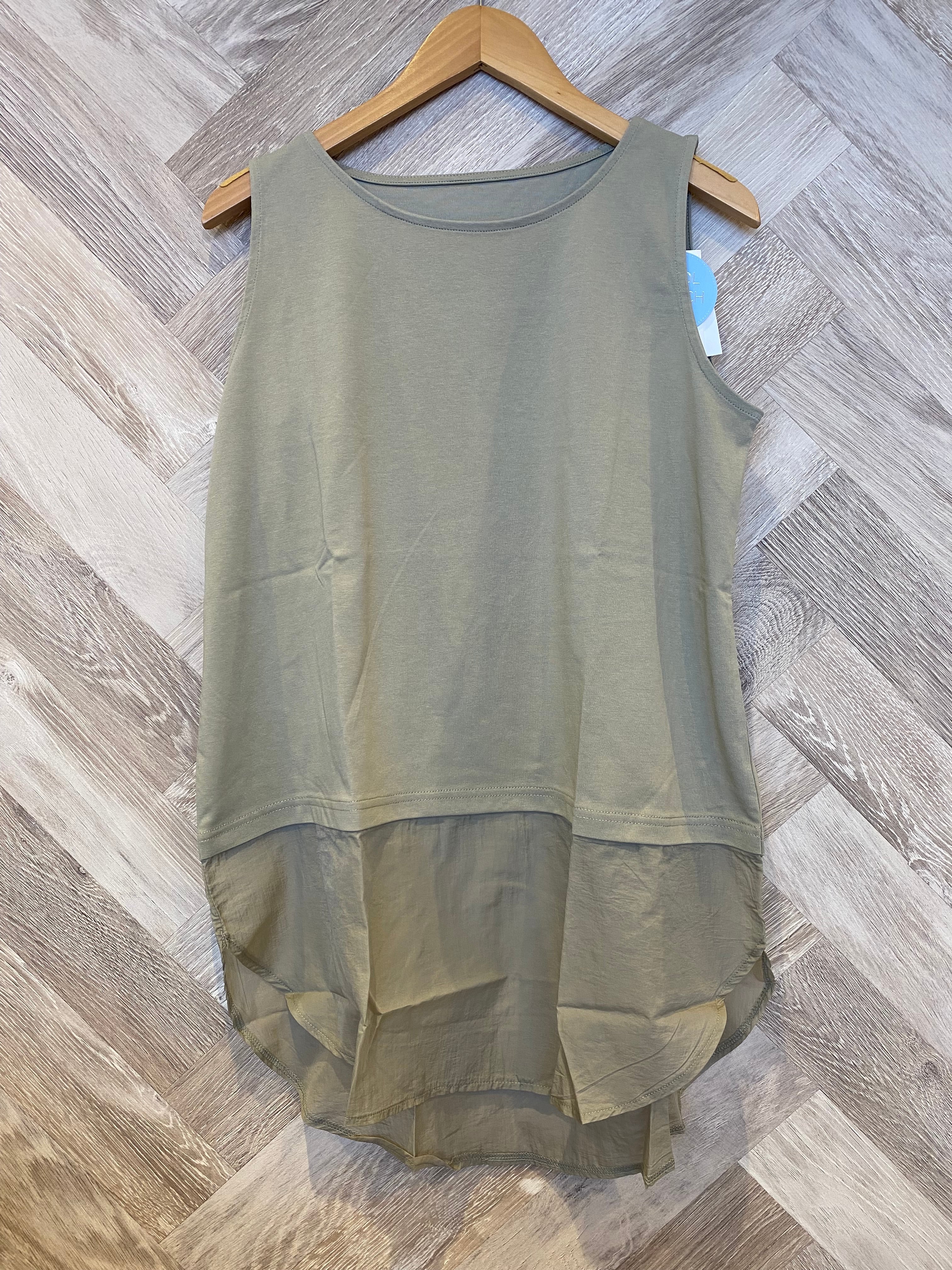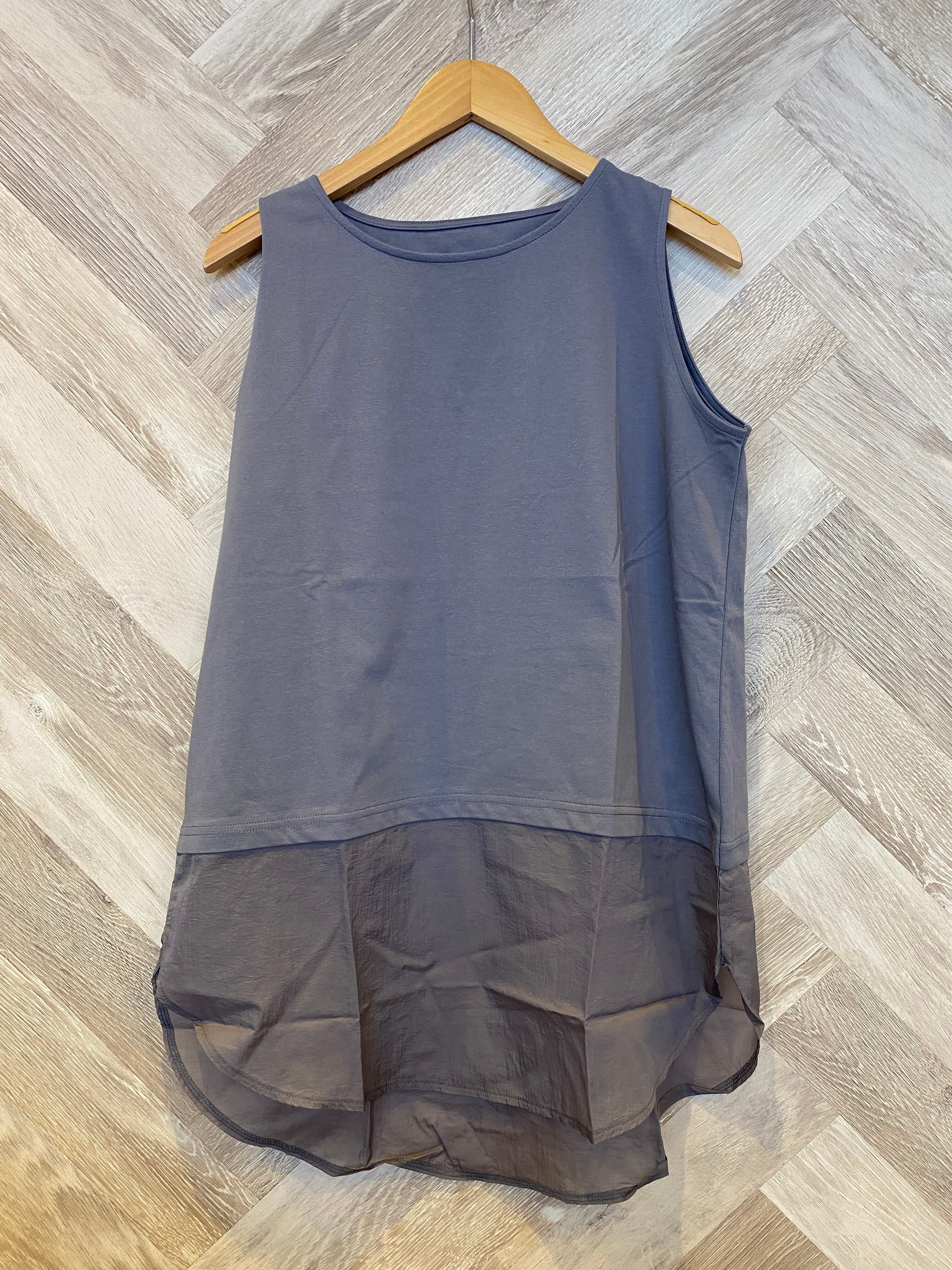 裾にシアー感のある布帛生地をドッキングした異素材使いのタンクトップ