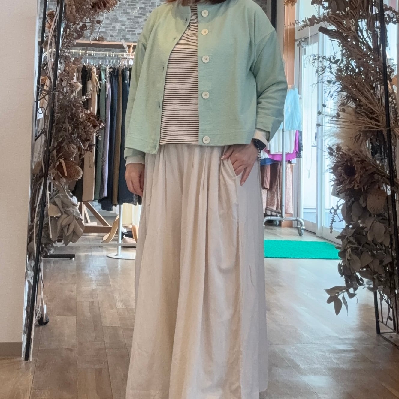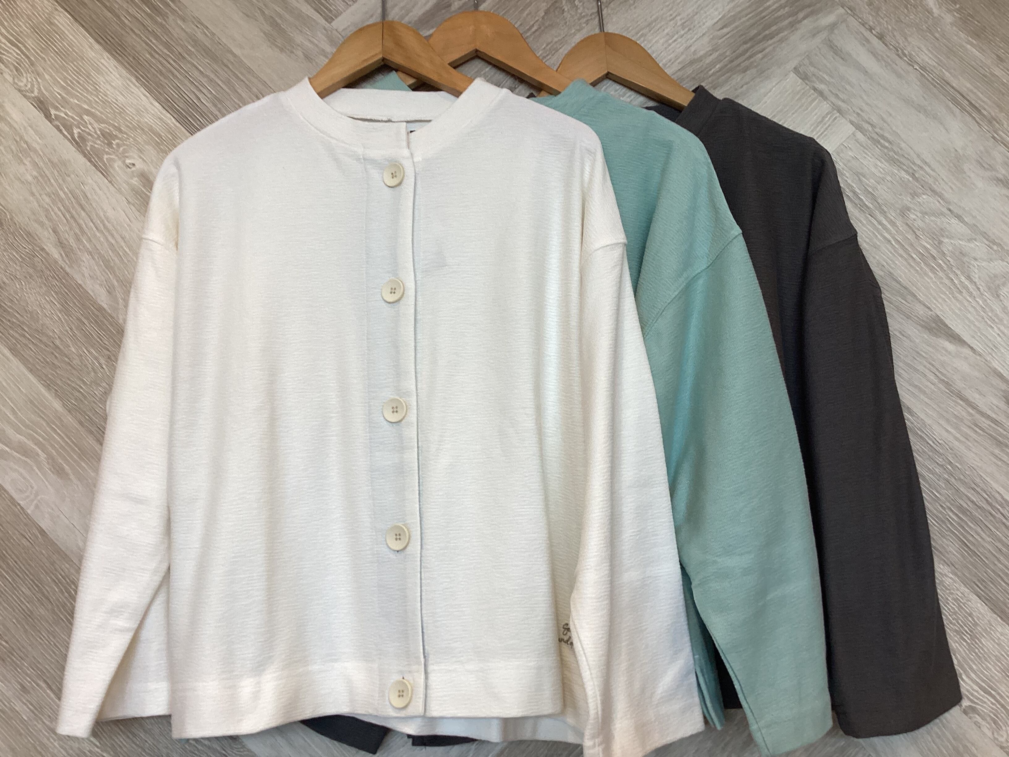 肌触りの良い細かいループが入った天竺を使用したカーディガンです